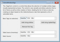 The new cTagsForm class brings the same tagging capabilities to Windows applications as cWebTagsForm (including custom separators) did for web applications. This class allows multiple items to be created or selected from a source, such as a table, and then shown visually as boxes/balloons called tags. Demo views for both classes are available in the Order Entry (DemoWindowsTags.vw) and WebOrder (DemoWebTags.wo) workspaces.